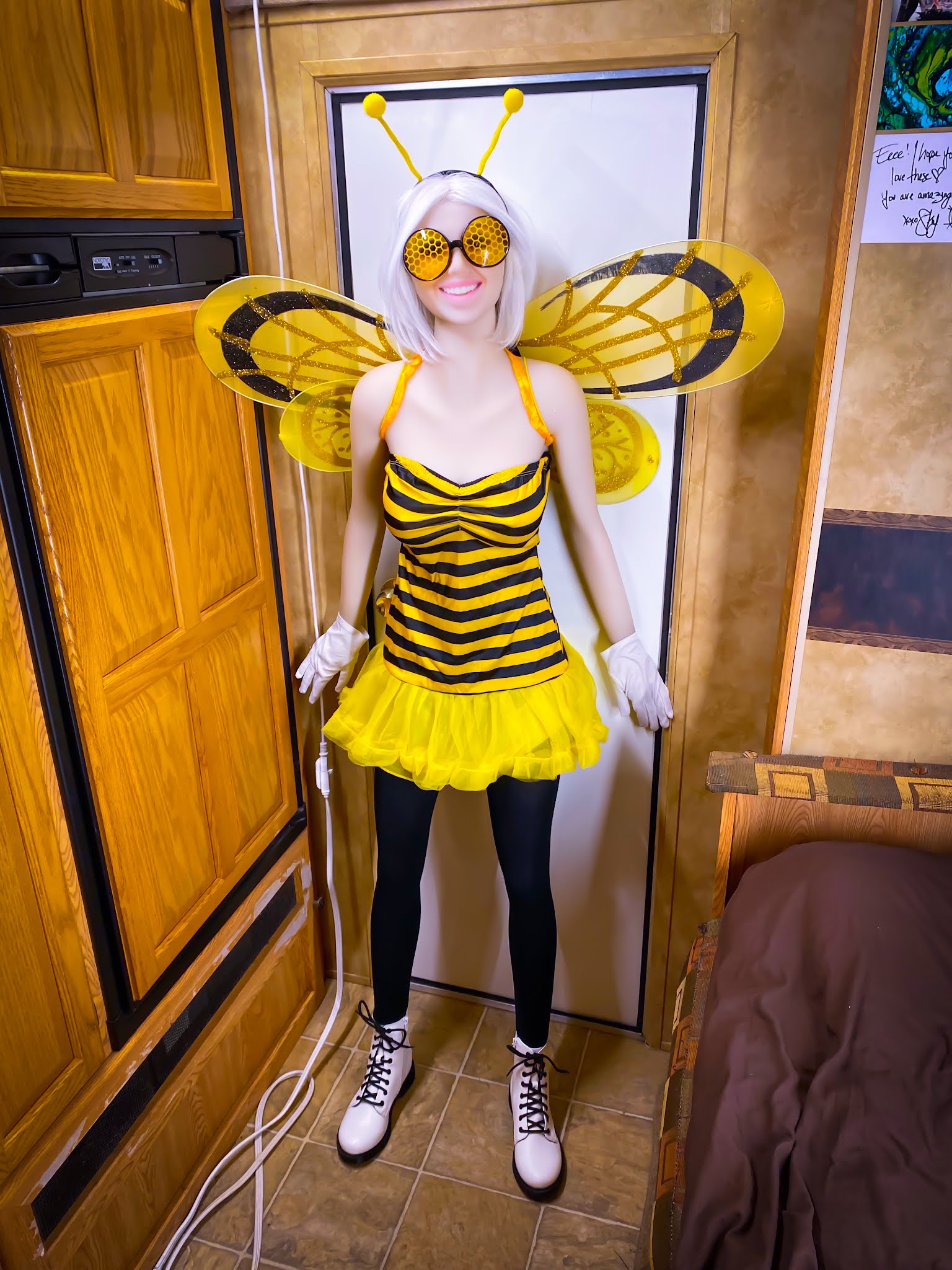 Happy Halloween! This is such a wonderful time for my girls and me. The weather is nice, work is not too busy yet, smoked food, whiskey tastes good, and the girls love to dress up silly. This year, Annie decided to dress as a honey bee. Very cute and simple.
